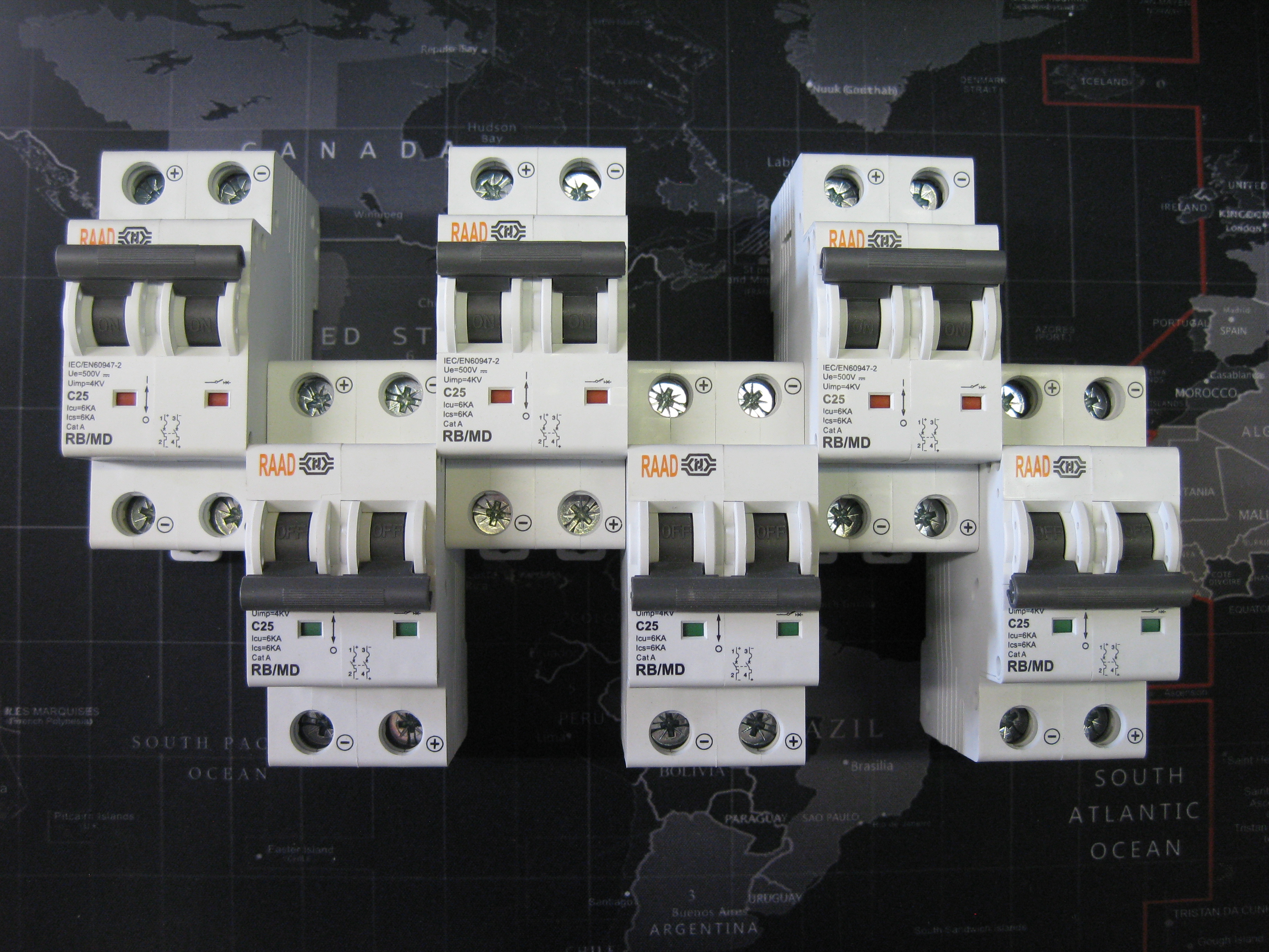 کلید مینیاتوری DC رعد RAAD (دو پل) دو فاز 25 آمپر تیپ C جریان مستقیم 6 کیلو آمپر
