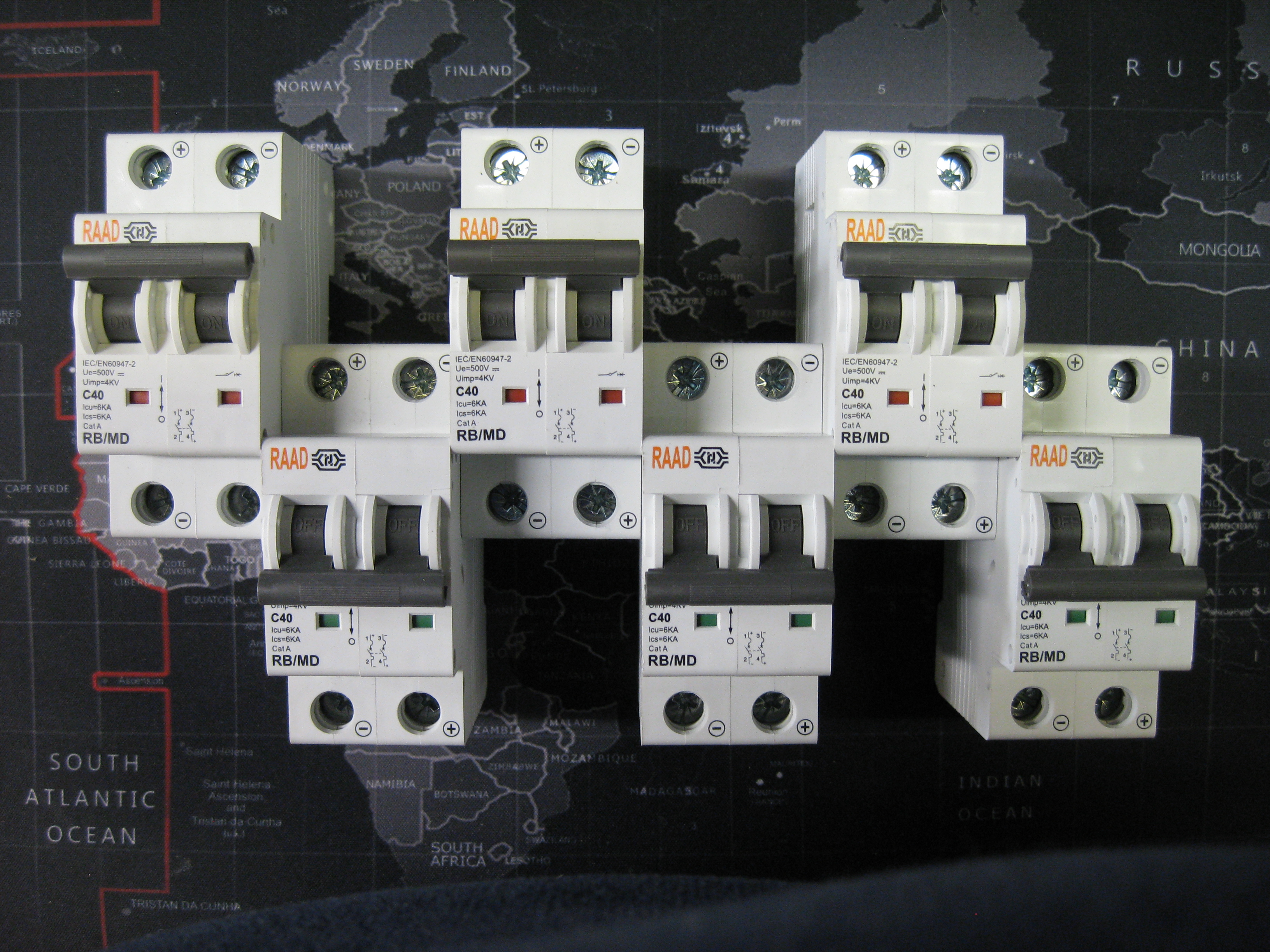 فیوز مینیاتوری DC رعد RAAD دو پل (دو فاز ) 40 آمپر تیپ C جریان مستقیم 6 کیلو آمپر