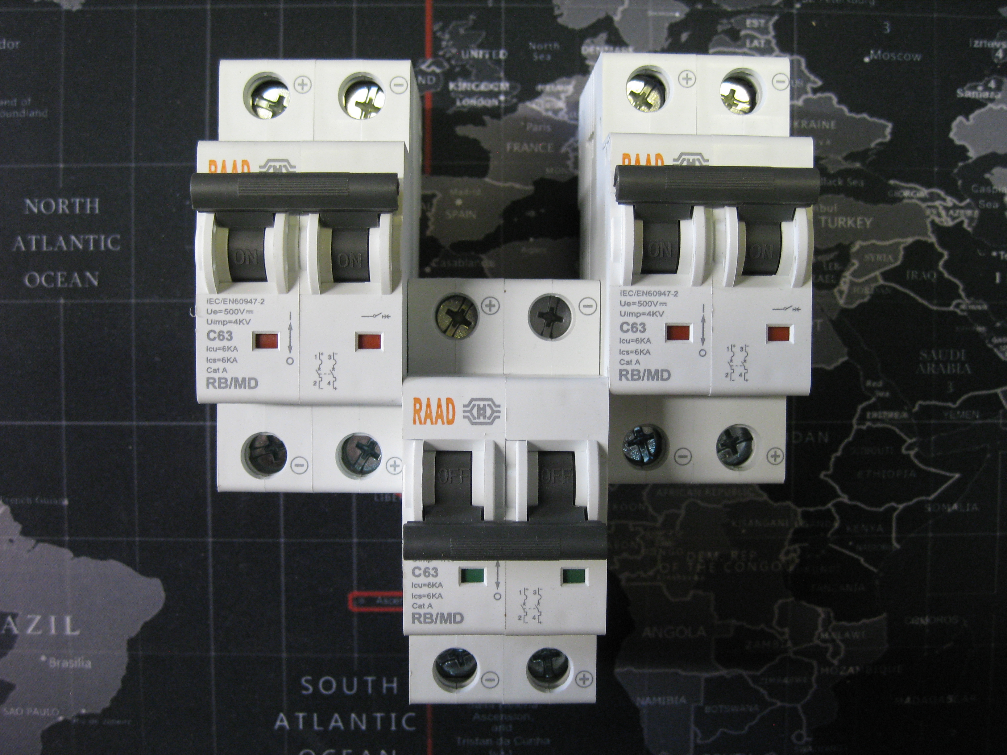 کلید مینیاتوری DC رعد RAAD (دو پل ) دو فاز 63 آمپر تیپ C جریان مستقیم 6 کیلو آمپر