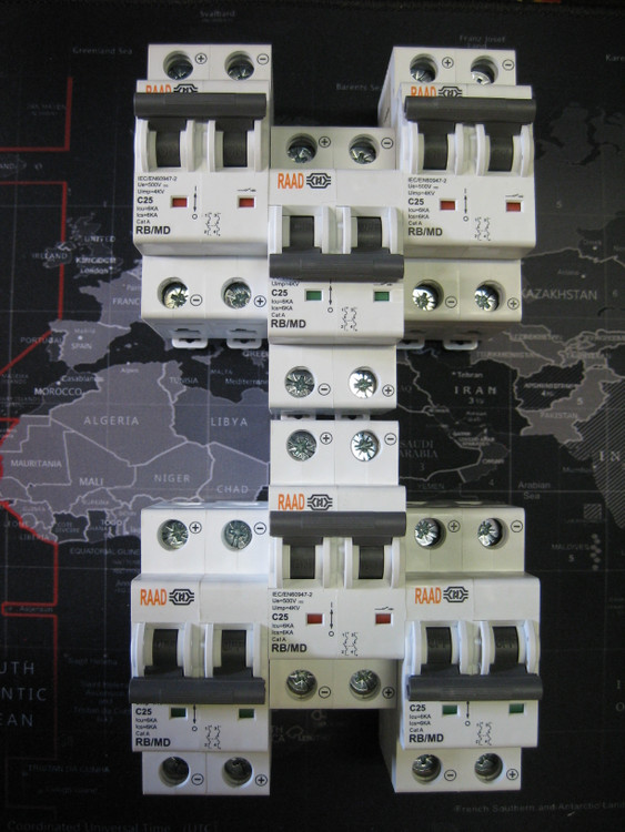 کلید مینیاتوری DC رعد RAAD (دو پل) دو فاز 25 آمپر تیپ C جریان مستقیم 6 کیلو آمپر