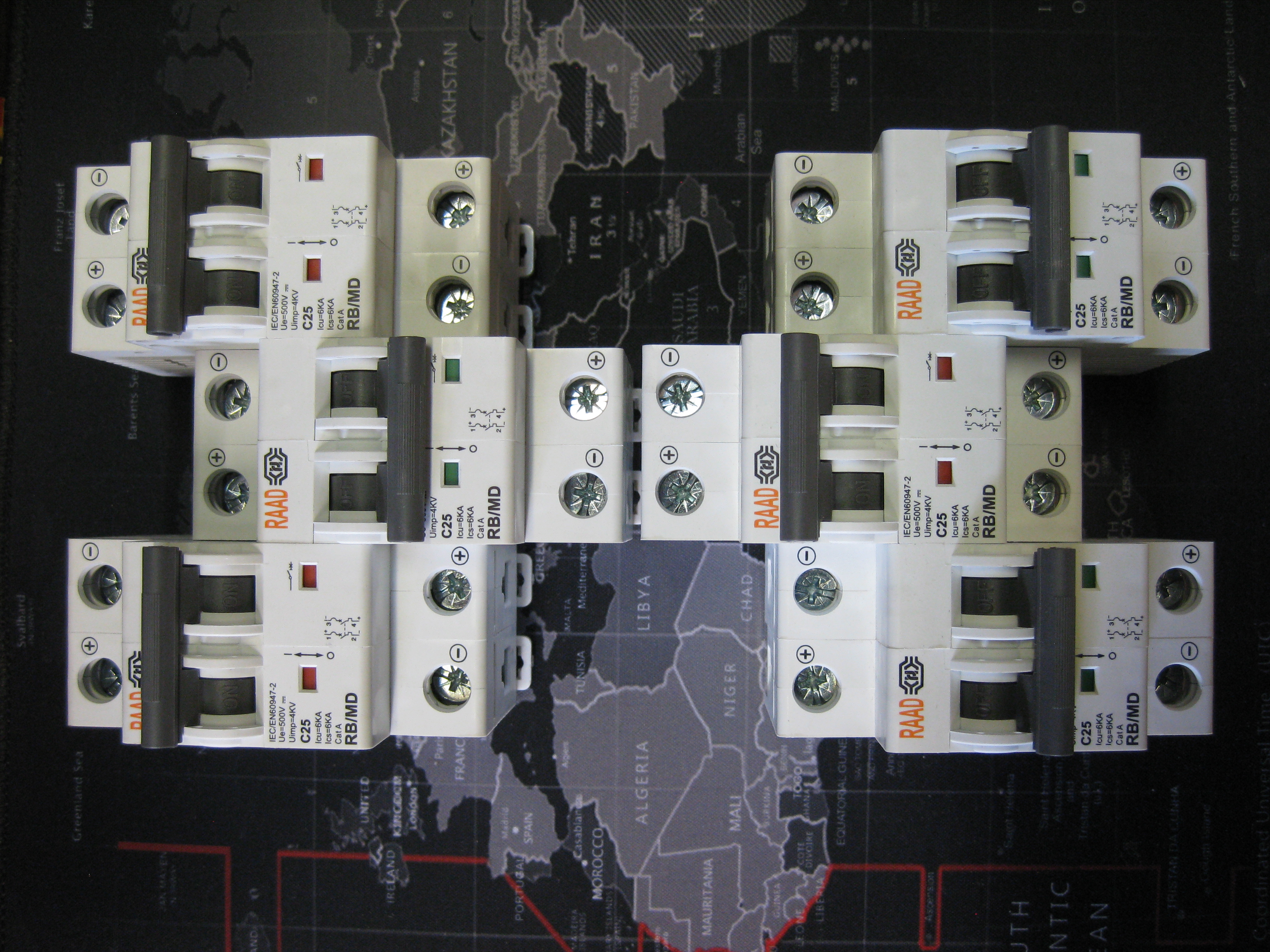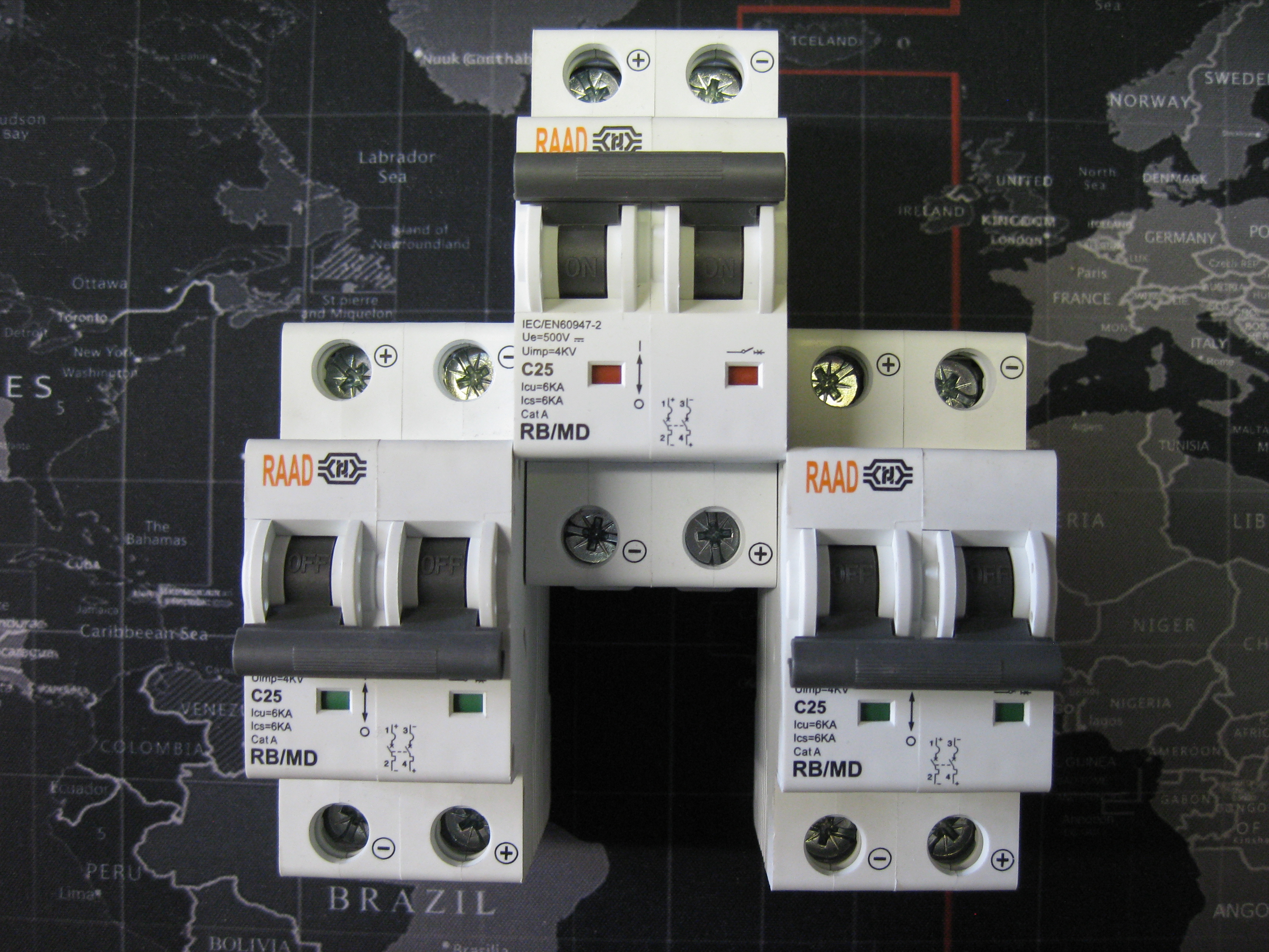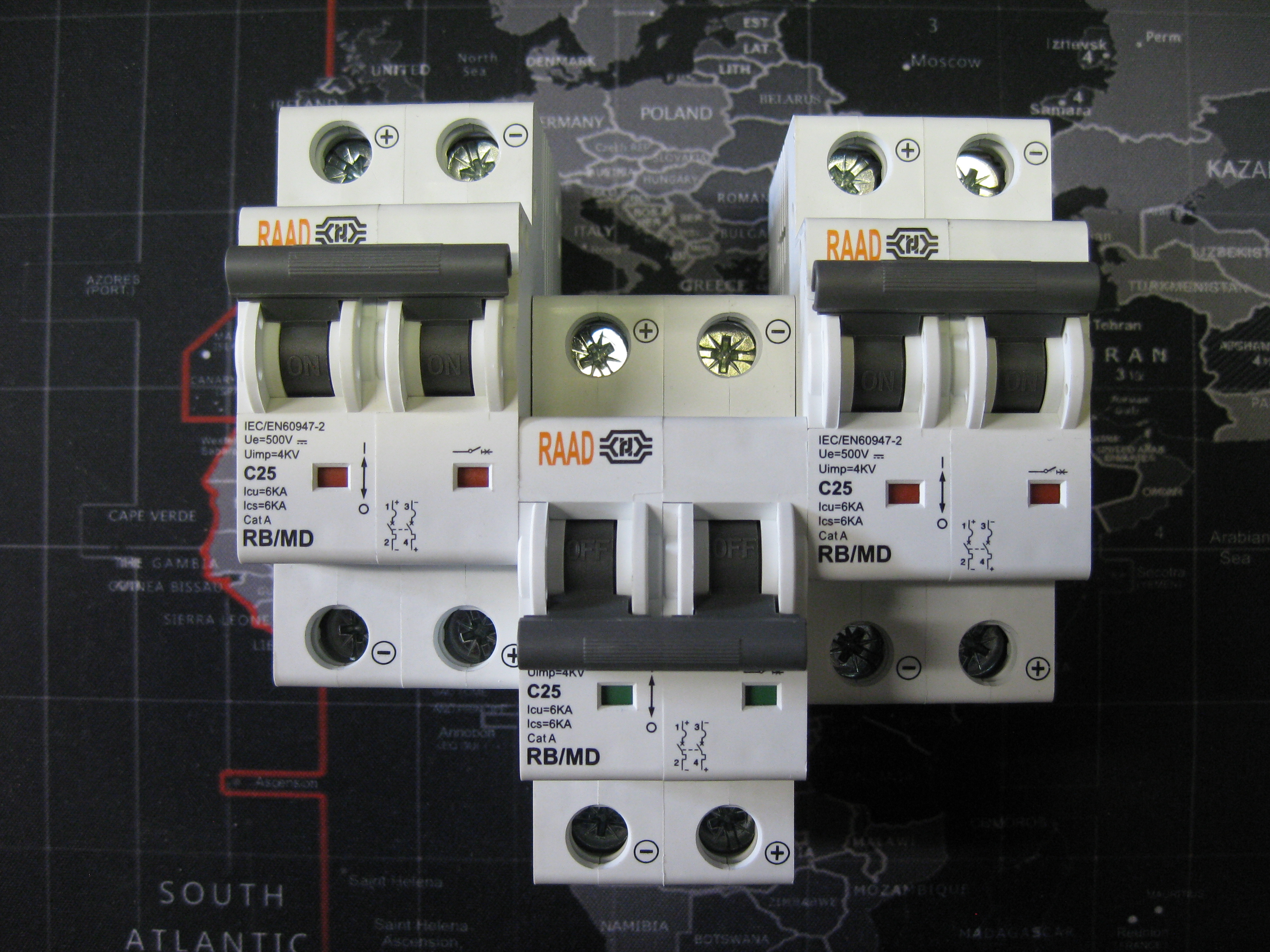 کلید مینیاتوری DC رعد RAAD (دو پل) دو فاز 25 آمپر تیپ C جریان مستقیم 6 کیلو آمپر